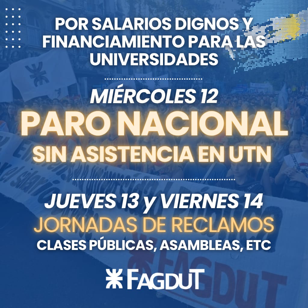 72 horas de protesta activa: 12/11 - PARO DE ACTIVIDADES por 24hs. 13/11 y 14/11 - JORNADAS DE VISIBILIZACIÓN.🔊 Exigimos paritarias, salarios dignos y financiamiento para la universidad pública