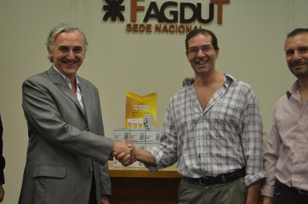 La FAGDUT agradeció hoy el valioso aporte de la empresa multinacional Siemens, quienes se sumaron a la campaña solidaria “Yo Ayudo” y donaron un centenar de interruptores diferenciales para los damnificados por la inundación en Concordia. Además nuestro gremio adquirirá más disyuntores con el aporte voluntario de cientos de docentes de todo el país que también se sumaron a esta iniciativa y los entregará a los hogares afectados para reducir el riesgo eléctrico; el objetivo de FAGDUT es poder donar 200 interruptores diferenciales.