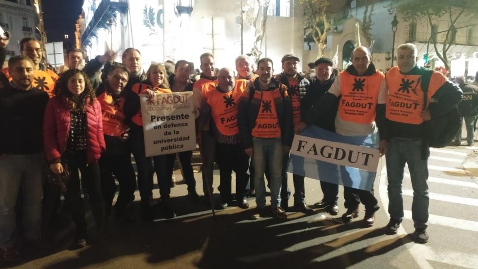 Junto a las centrales sindicales universitarias, los científicos y los estudiantes de todo el país, la FAGDUT participó en la Marcha de Antorchas en defensa de la universidad pública y el salario docente.
