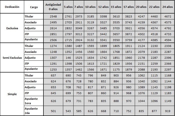 *** El periodo paritario salarial universitario, va desde Marzo de un año a Febrero del año siguiente. La presente oferta va desde 1/3/18 a 28/2/19.