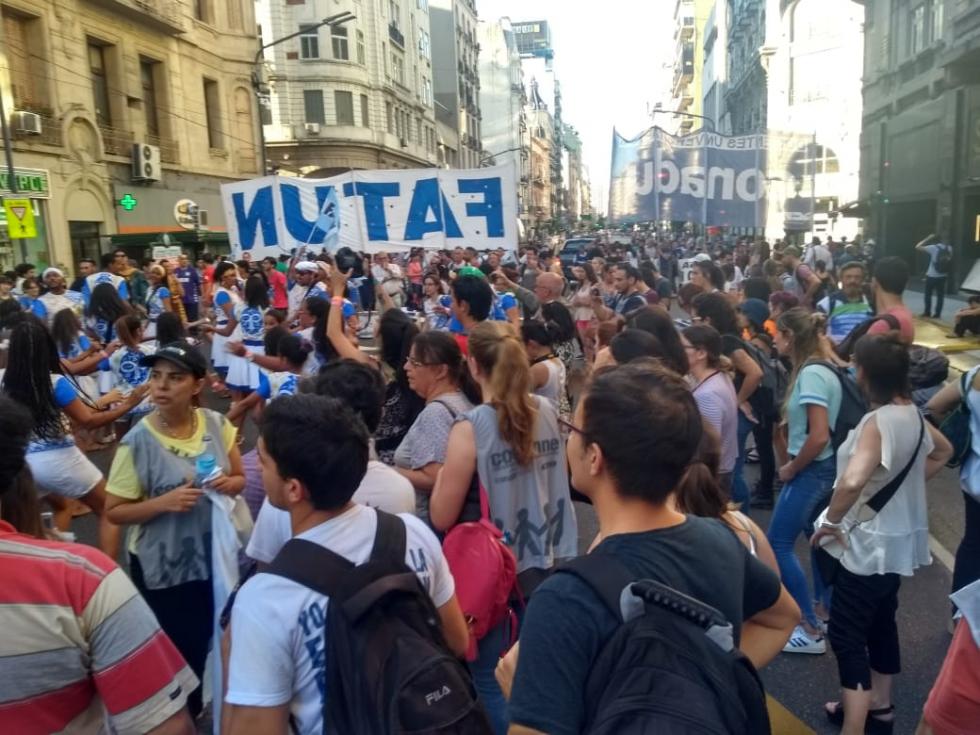 FAGDUT participó en la organización de una movilización multitudinaria el pasado miércoles 21 de noviembre en la CABA, junto a otras Federaciones gremiales. Docentes de Haedo, Avellaneda, Delta, Buenos Aires y el Instituto Superior del Profesorado Técnico marcharon con los estudiantes y se expresaron con alta voz de reclamo.