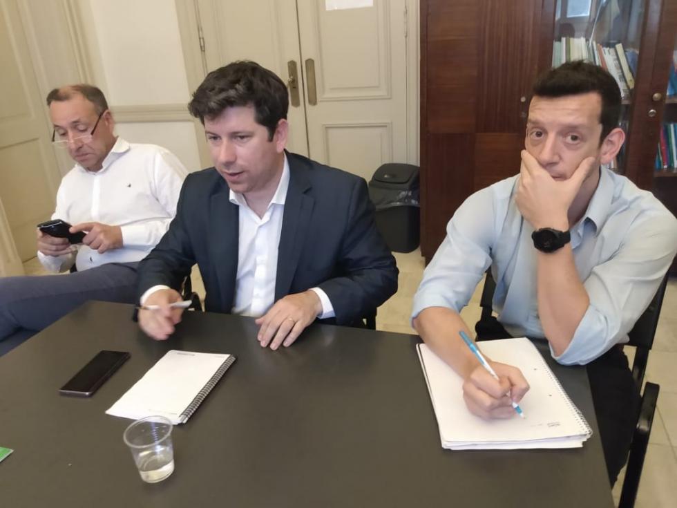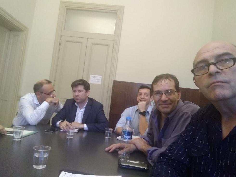 Preside el SPU, Pablo Domenechini, junto al Dr nacional de presupuesto, Diego Warpachiwics, y el secretario de relaciones gremiales del Mrio de educación Miguel Garofalo.